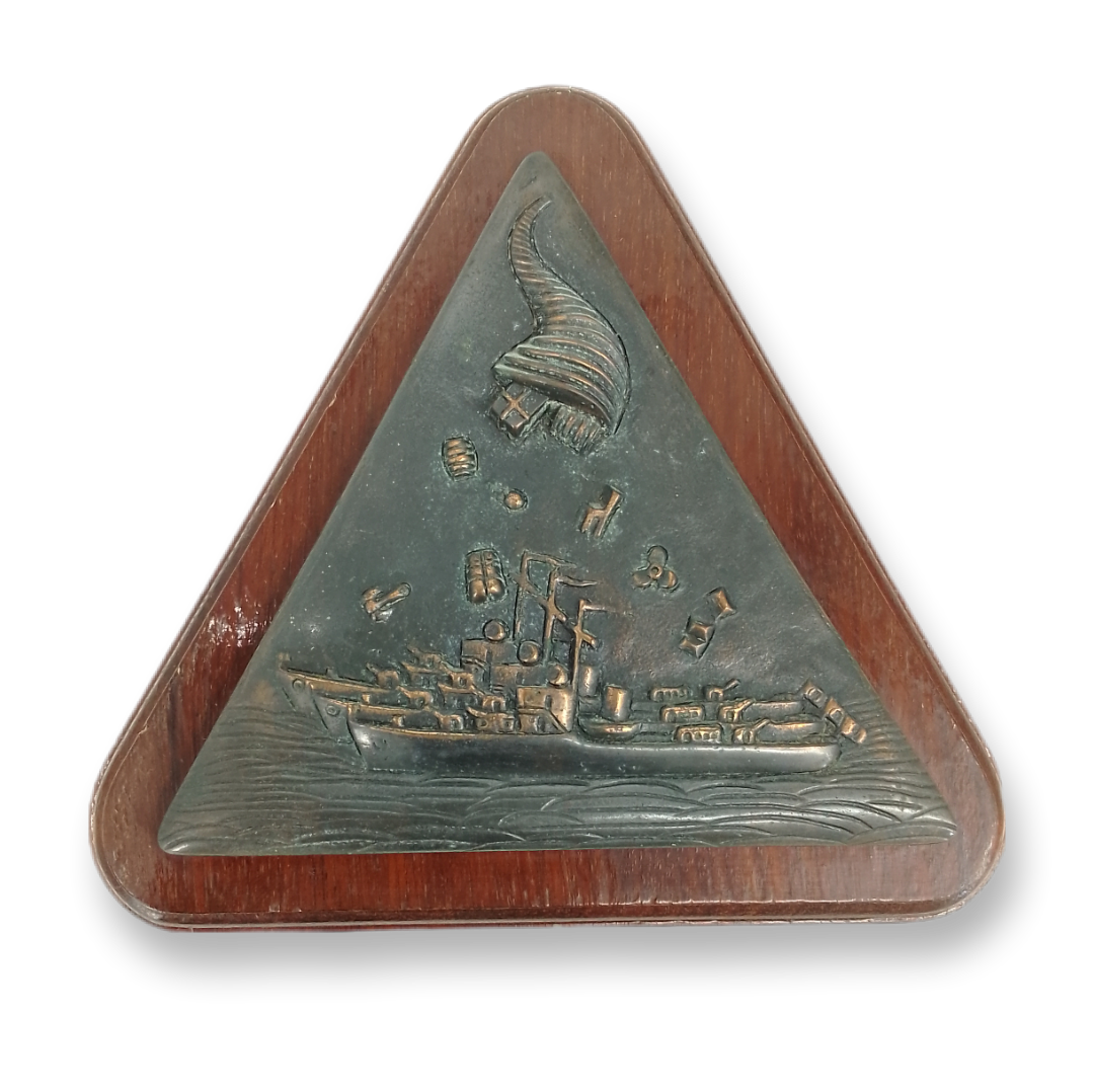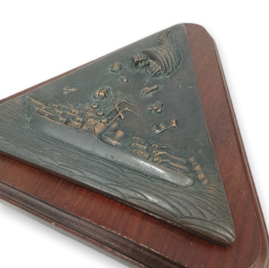 Cresta em bronze sobre base de madeira de 2 cm.