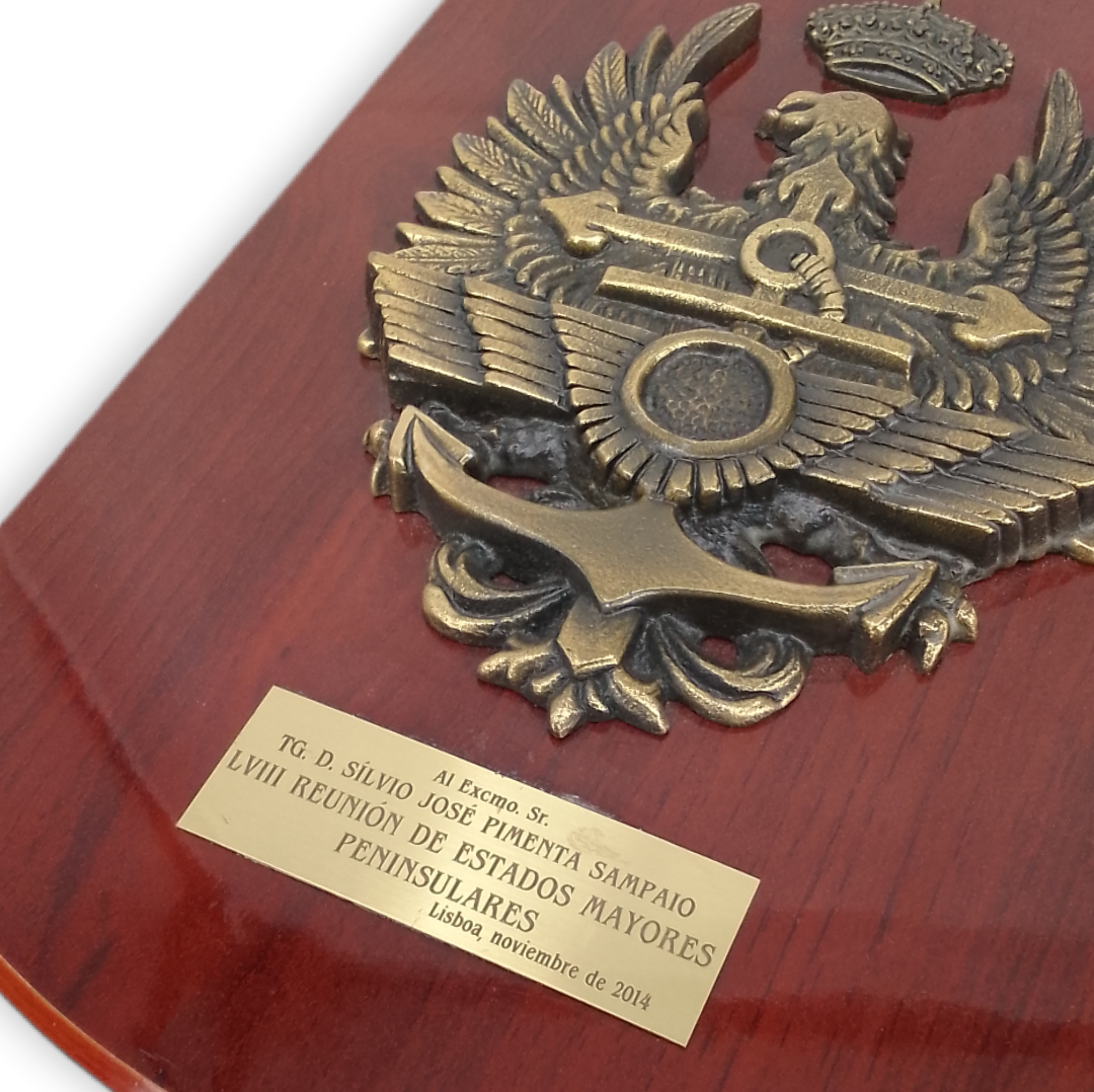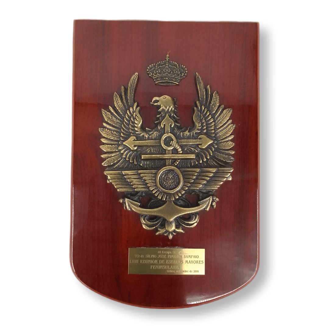 Cresta em latão com base de madeira de 1.5 cm